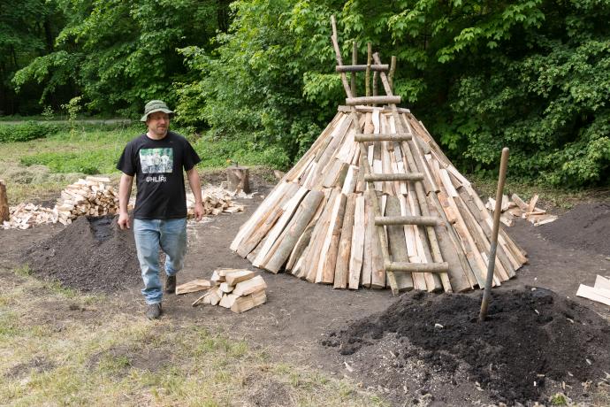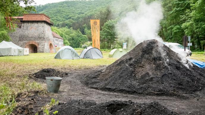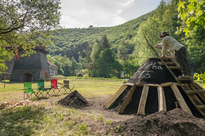 Po všechny tři dny však bude probíhat výpal dřevěného uhlí v milíři a tavby domácího teamu v replikách raněstředověkých kusových železářských pecí s tenkou hrudí. Milíř bude stavěn o víkendu 21. a 22. května a zapálen v pondělí 23. května.